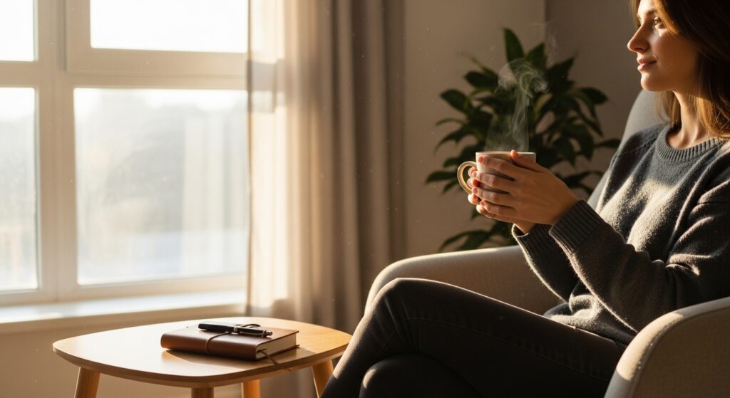 • Individuals practising gratitude and mindfulness routines.